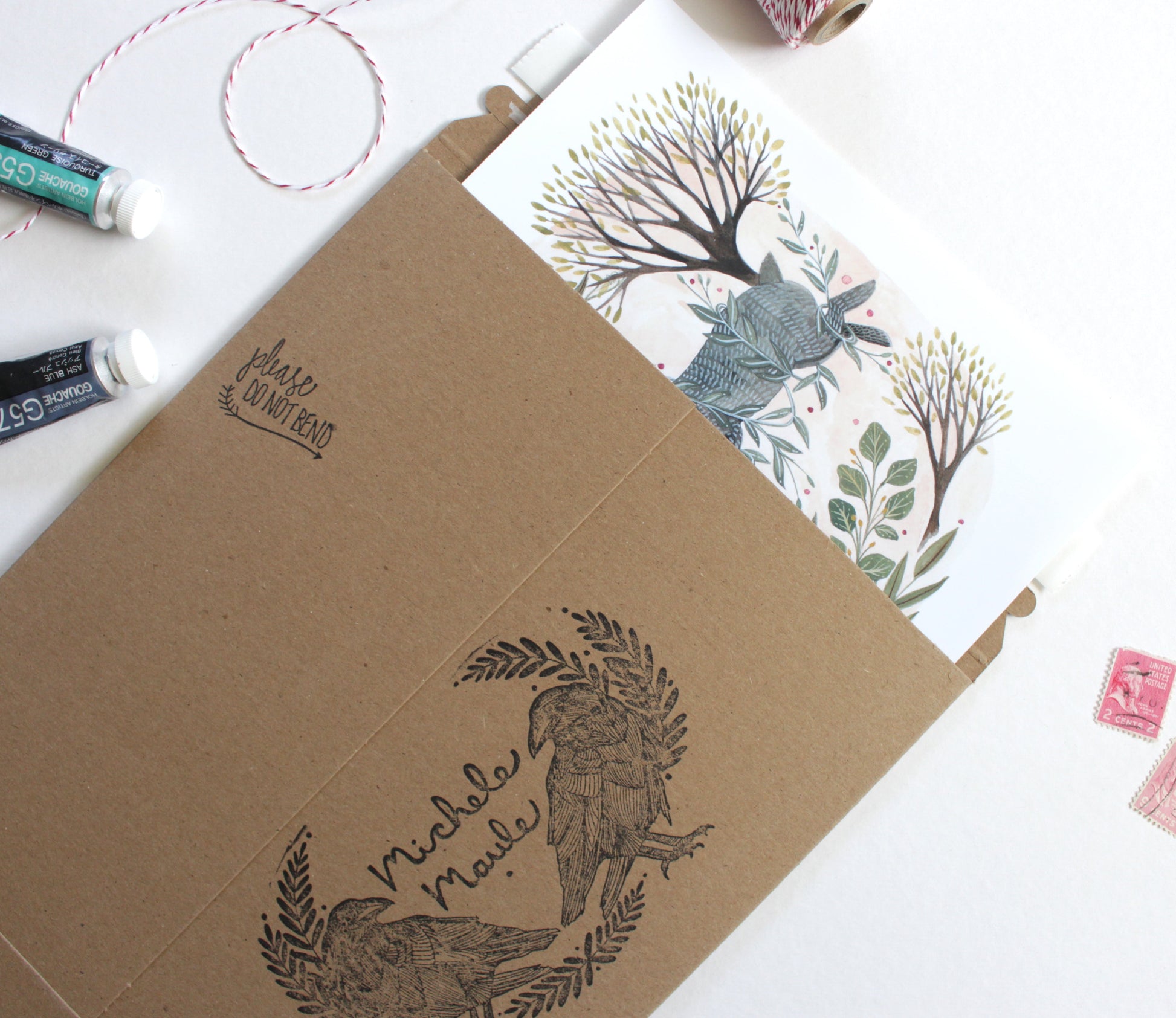 - It comes in a protective plastic sleeve with a sturdy backing board.