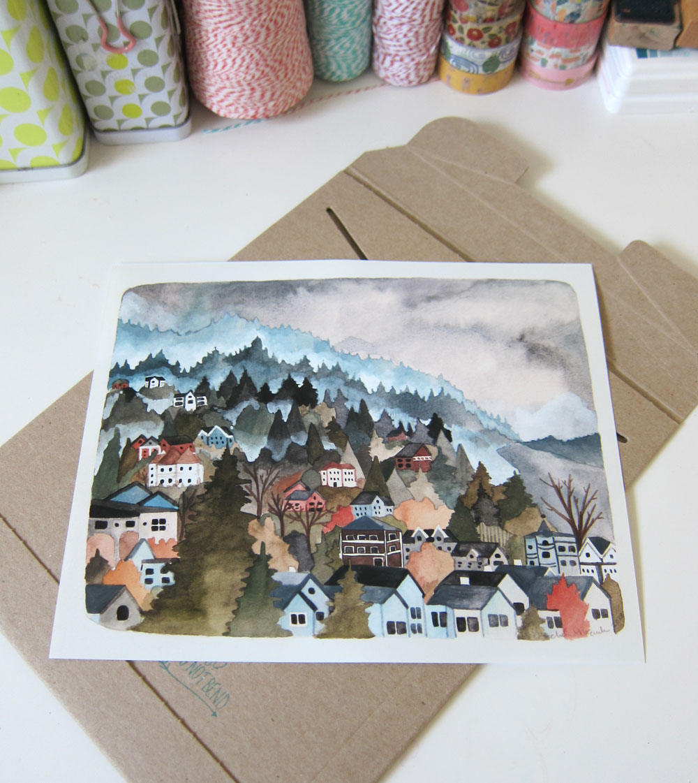 Hello! This is a listing for a reproduction print of an original watercolor painting of Portland's West Hills.