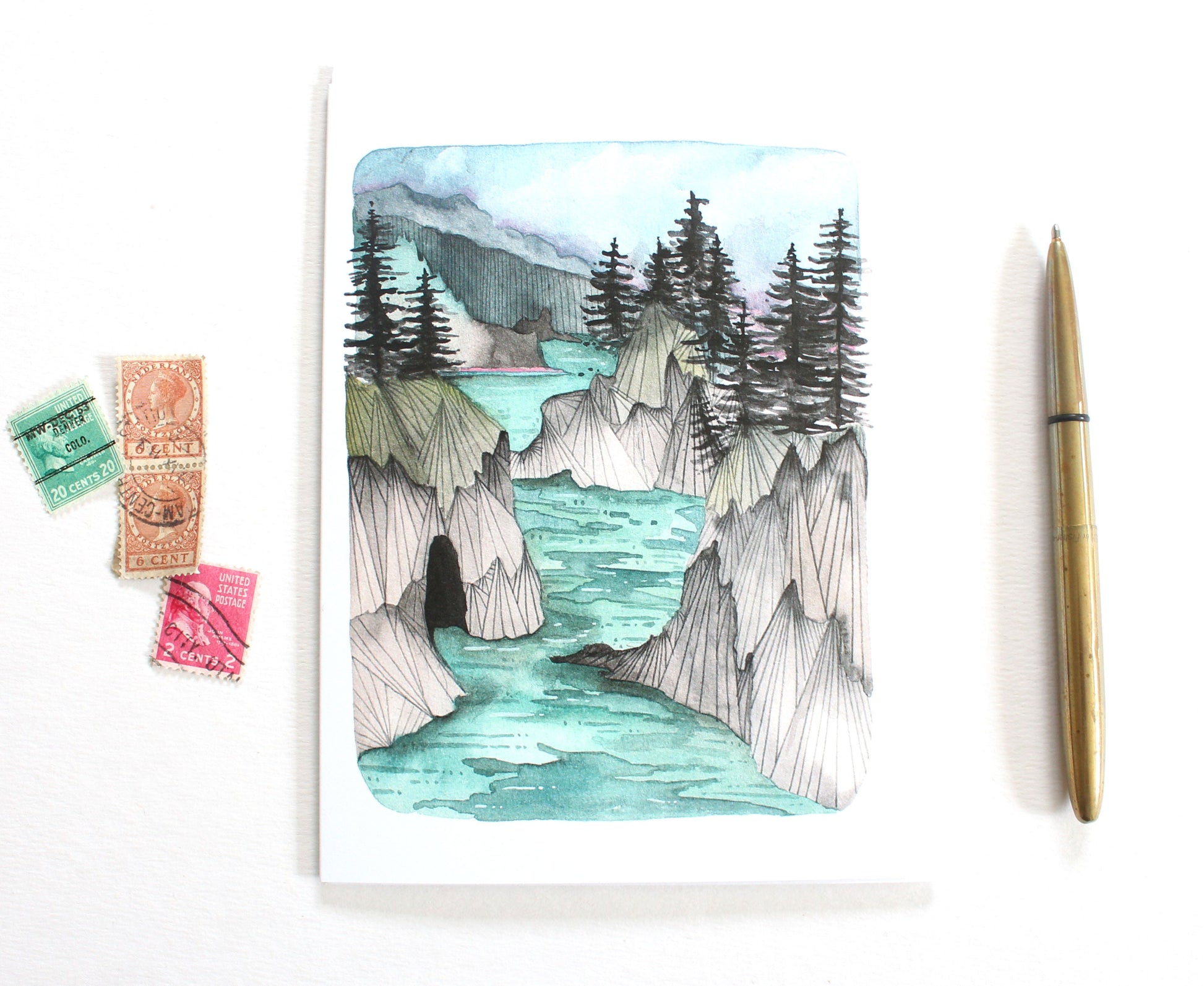 Hello! This is a blank greeting card featuring a natural bridge located near Samuel Boardman State Park. The original was created using gouache paint on paper.
