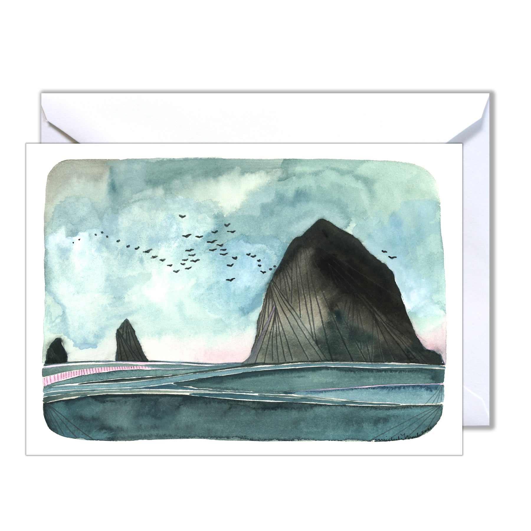 Hello! This is a blank card featuring Haystack Rock located in Cannon Beach, Oregon.