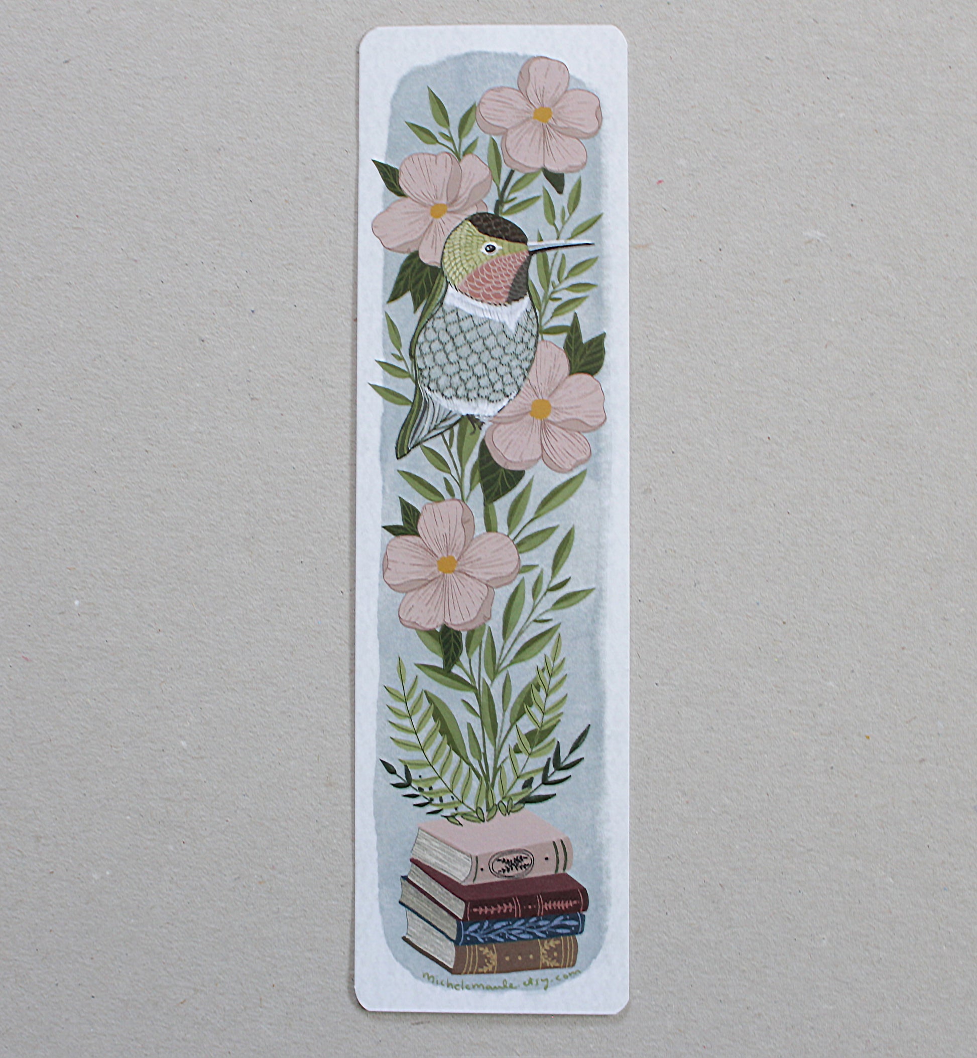 This is a listing for a single bookmark featuring a little hummingbird chillin' in a poppy garden. I used Procreate on my iPad to draw and create this unique bookmark.