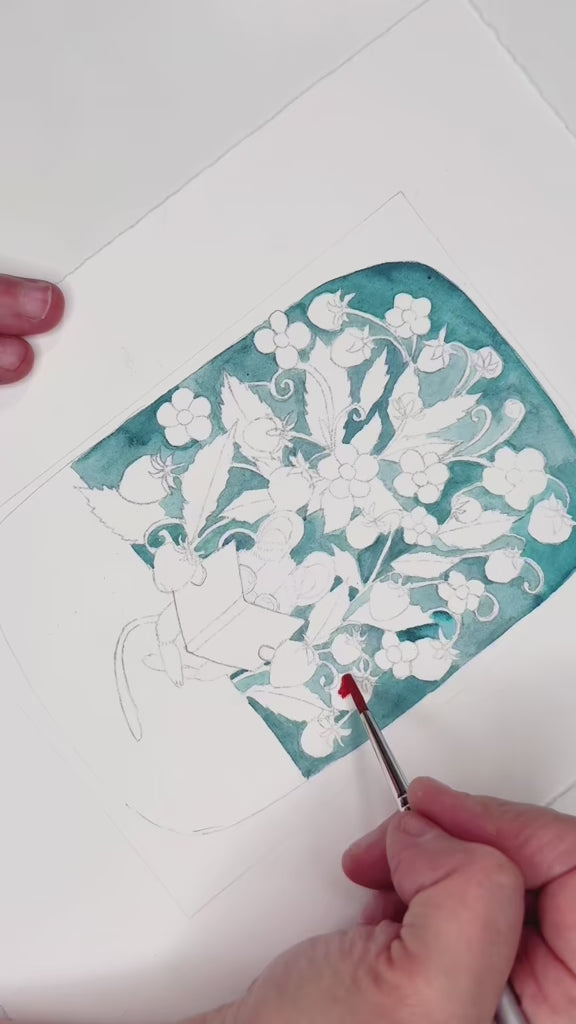 - Painted using gouache paint, which is a lot like watercolor, but much more opaque.