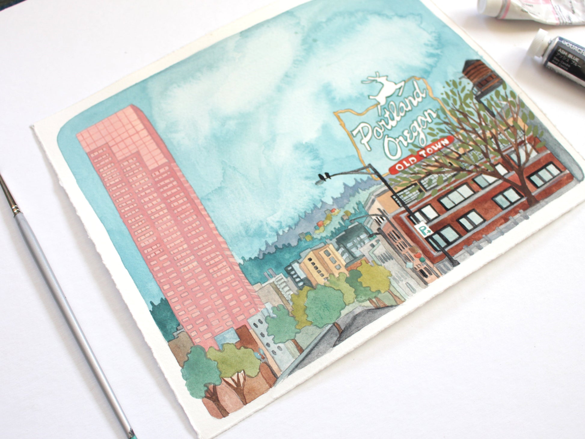 Original Portland Oregon Watercolor Painting - Big Pinkrt