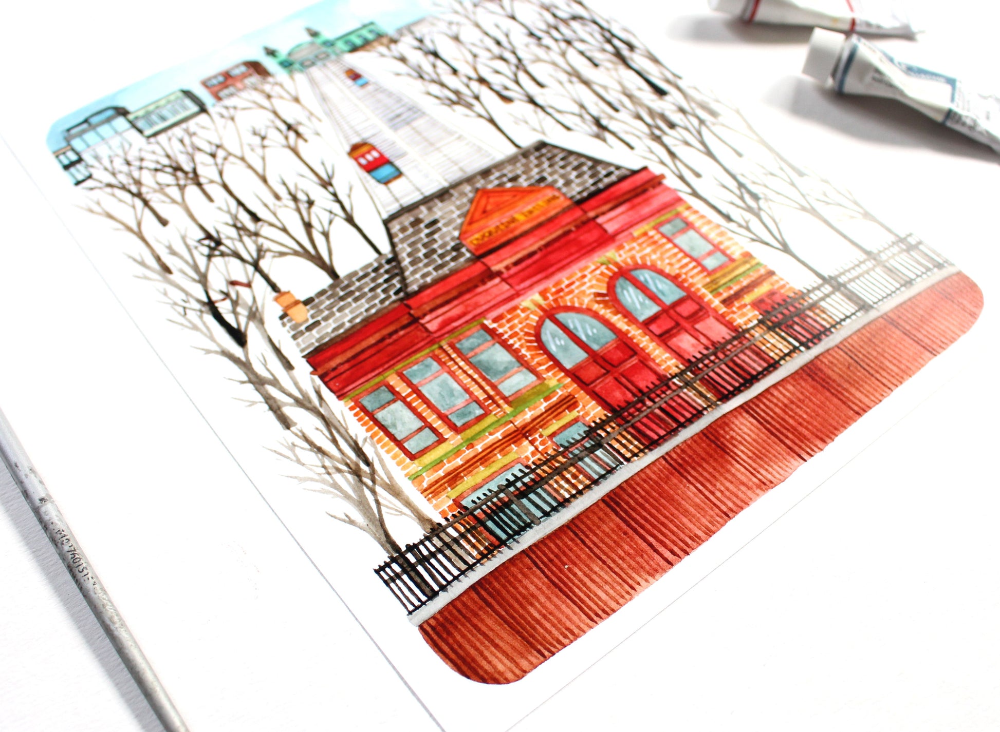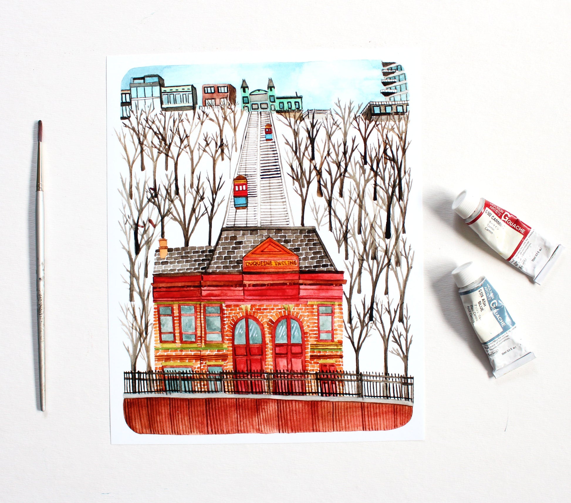 Hello! This is a listing for a reproduction print of an original watercolor painting of Pittsburgh's Duquesne Incline.