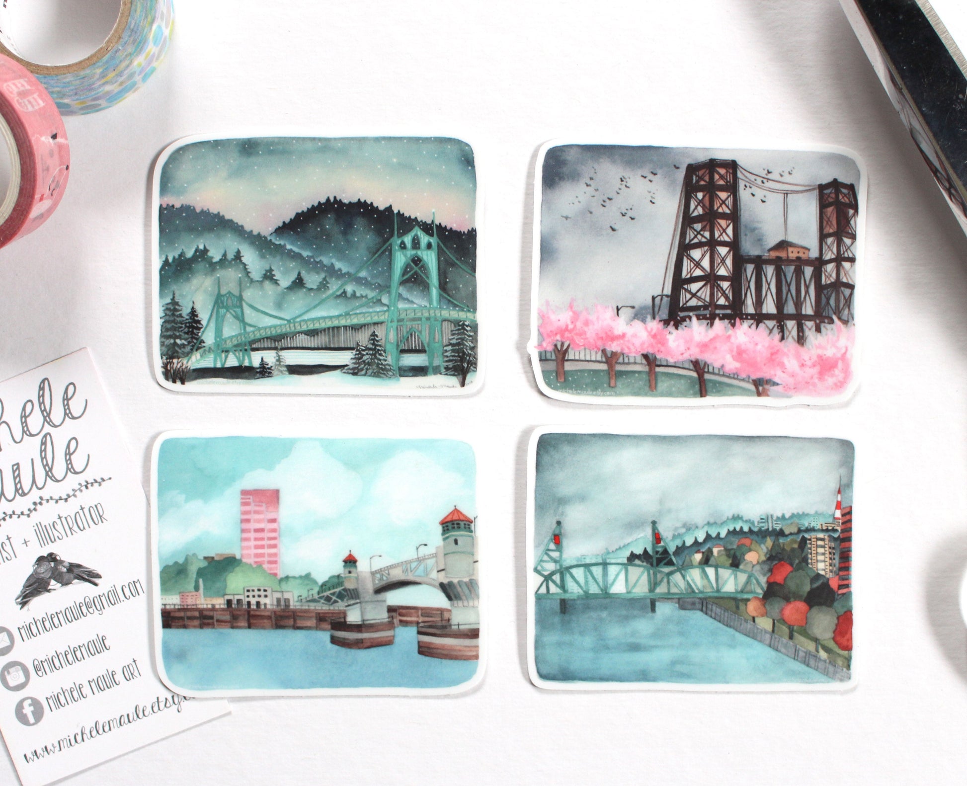 Set of Four Portland Bridge Stickers
