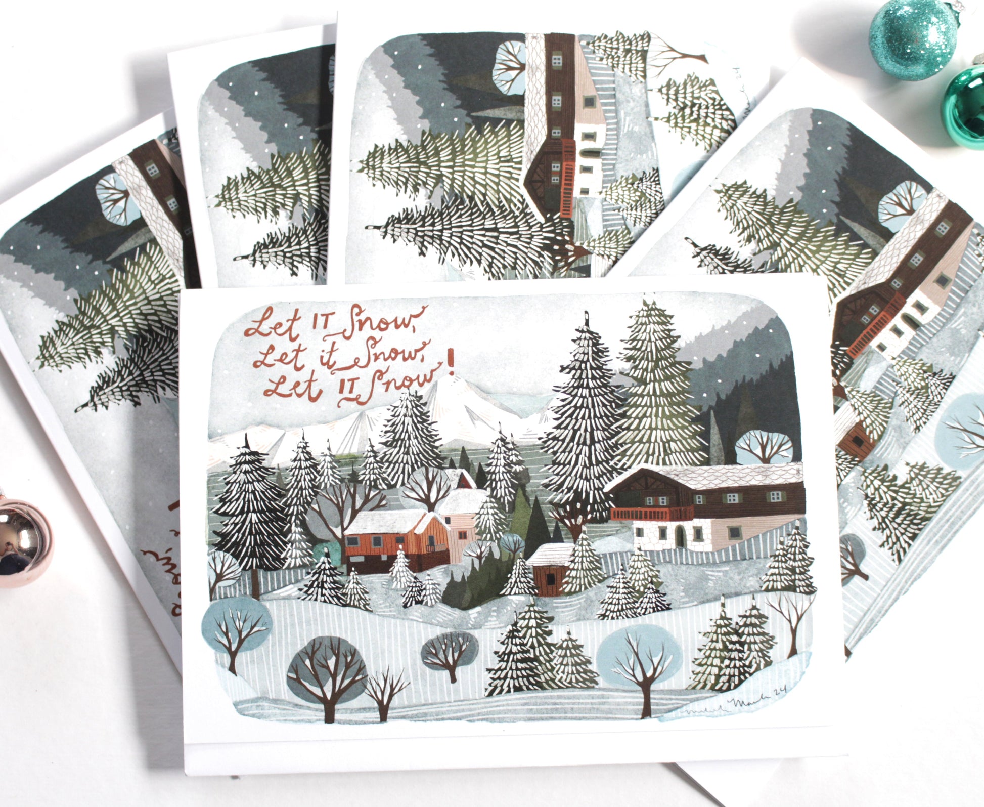 Set of illustrated Holiday Cards - Let it Snow, Let it Snow, Let it Snow!