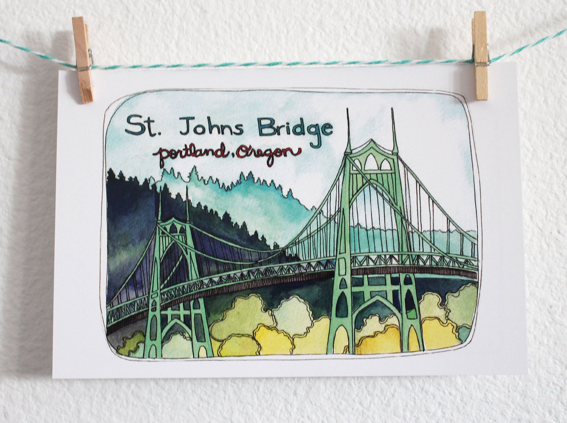 This is a listing for a single postcard featuring the St Johns Bridge in Portland, Oregon.
