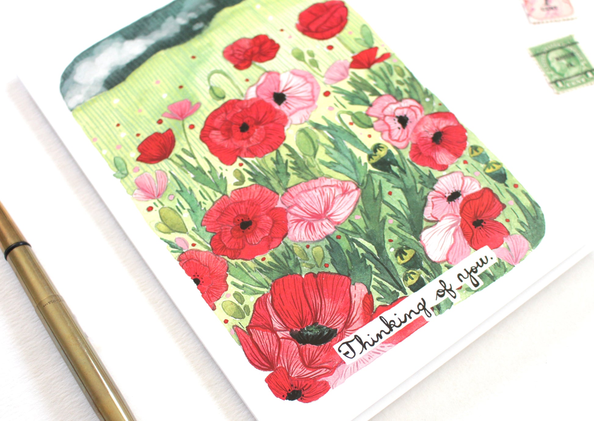 Hello! This is a listing for a blank card featuring a field of poppies.