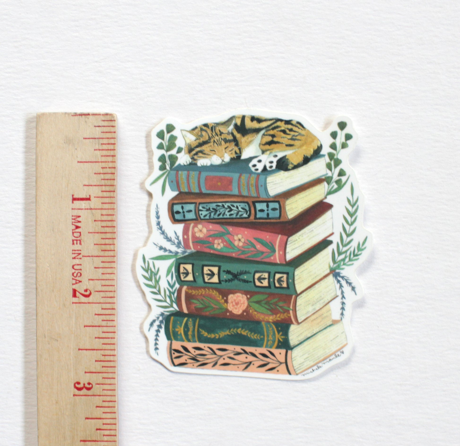 Hello! This is a listing for a single cat with books, vinyl sticker.